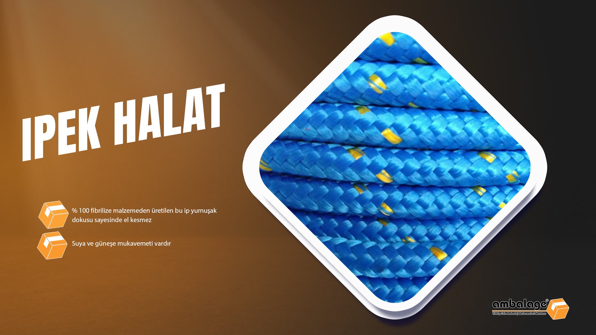 %100 fibrilize malzemeden üretilen bu ip yumuşak dokusu sayesinde el kesmez ve kullanıcısına büyük kolaylık sağlar. Su ve güneşe mukavemeti yüksek olan ipek halat paketlemede aranan ürünlerdendir.